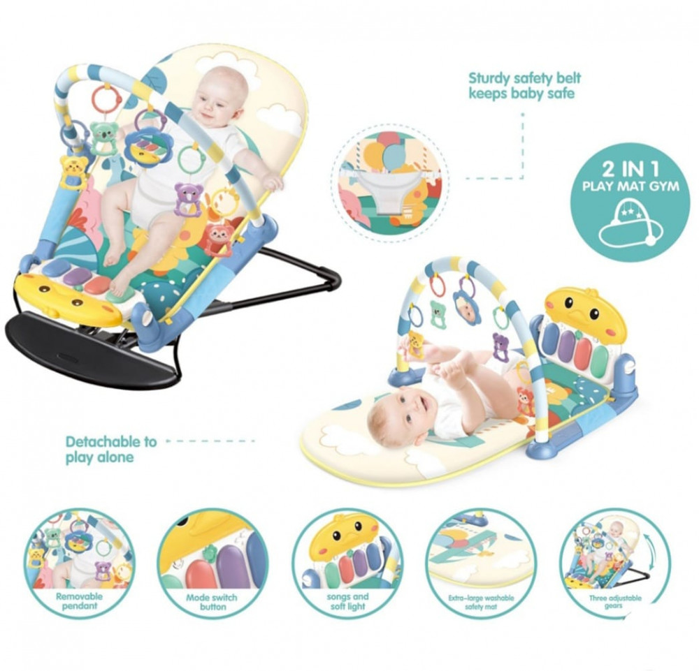 كرسي و مفرش محمول موسيقي للاطفال مصمم ليضع راحة طفلك في عين الاعتبار. يوفر جلوساً مريحاً للطفل تصميم آمن لطفلك تساعد الألوان الزاهية على تحفيز التنمية البصرية. تصميم سهل النقل والتنظيف. يحتوي على تفاصيل فريدة من نوعها تمنحه مظهراً رائعاً يساعدك كرسي الأطفال حديثي الولادة بلطف أثناء إكمال الأنشطة اليومية. كما يأتي مع العديد من الميزات لإبقاء طفلك مرتاحاً ومستمتعاً. يوفر المقعد الناعم والمبطن دعماً للظهر وهو جيد لوضع الطفل. يساعد على التطور البيولوجي للأطفال الرضع وقدرتهم على التنبيه والانتباه. يعمل الكرسي على تهدئة الأطفال العنيدين ويريح الأمهات